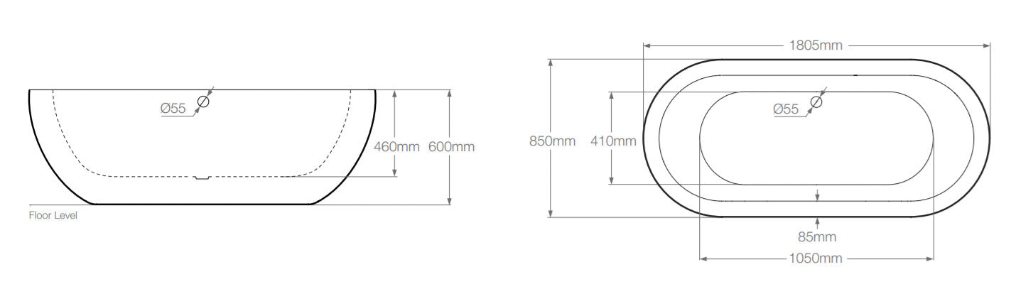 The Bolton bath requires a concealed waste kit, once fitted all external pipework is concealed within the body of the bath making this bath perfect for freestanding in a contemporary or minimalist bathroom.