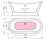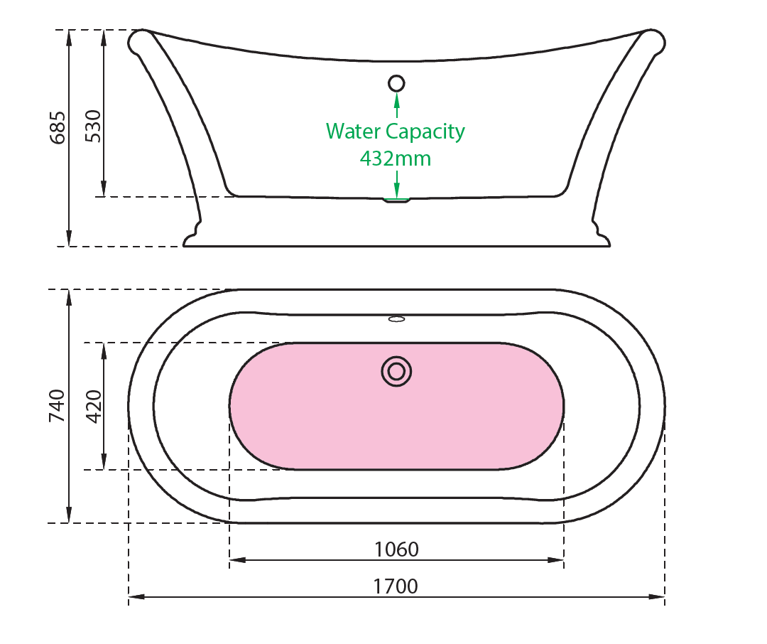 - Hand made using two pieces of 5mm sanitary grade acrylic sheets seamlessly blended into a single piece bath.