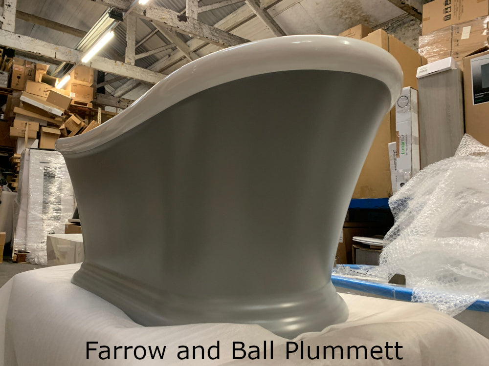 "Hi Rick, I just wanted to thank you very much for the support that you gave us during our bathroom update. The supplied bath, a Purley with a beautiful coat of Farrow & Ball paint, is just superb. It arrived when you said it would and was very well packaged for its protection. Even though you couldn't supply the taps that we were looking for, you went out of your way to ensure that we bought the correct taps (from another vendor) to go with our bath. Definitely above and beyond the call of duty. It was very much appreciated. As soon as the bathroom is completed, I'll send you a photograph." Linda, Norfolk, Nov 2020. Charlotte Edwards Purley bath painted in Farrow and Ball Plummett No. 272