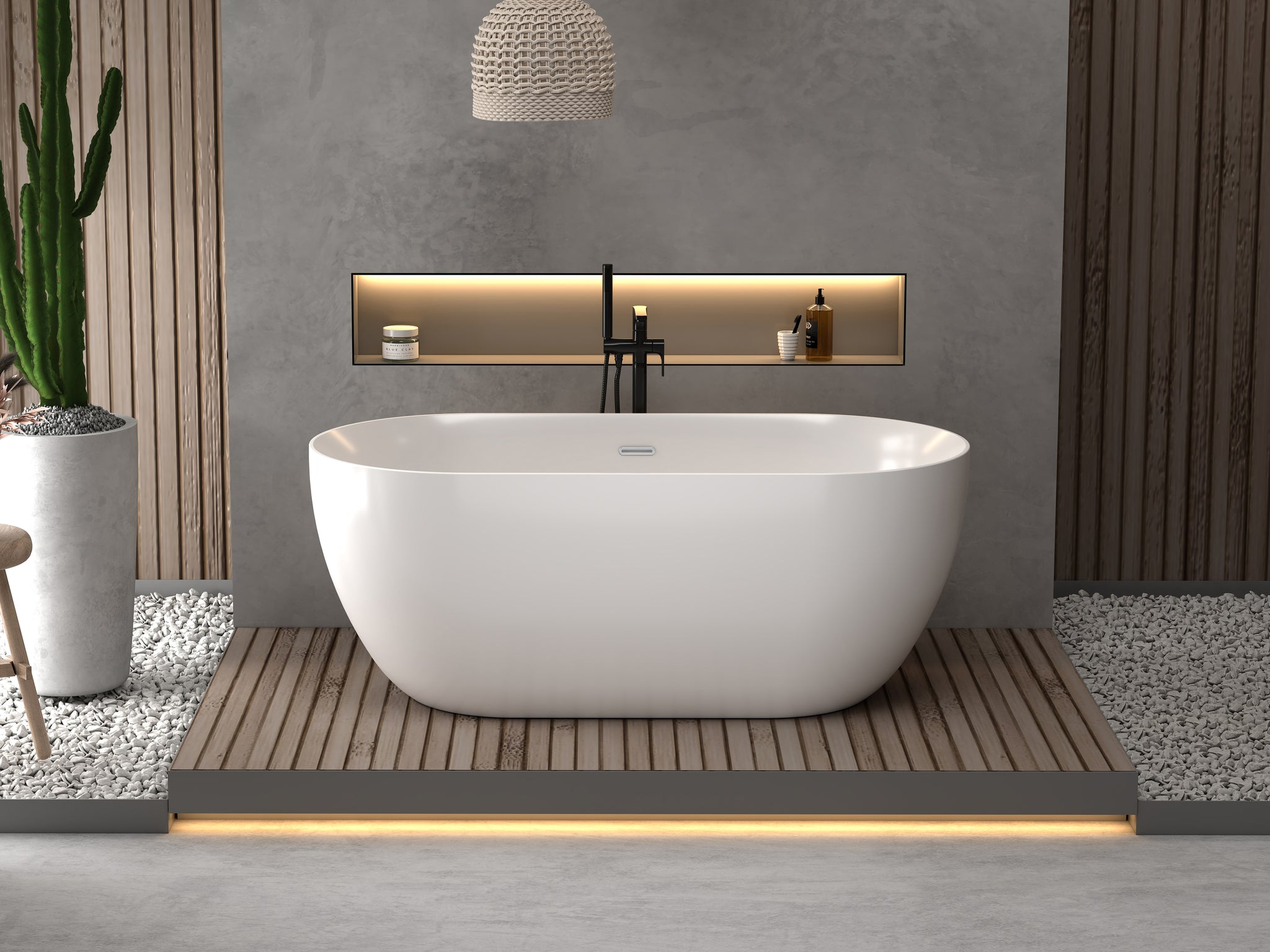 • Elegant and contemporary slim edged design single piece seamless freestanding bath.