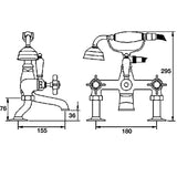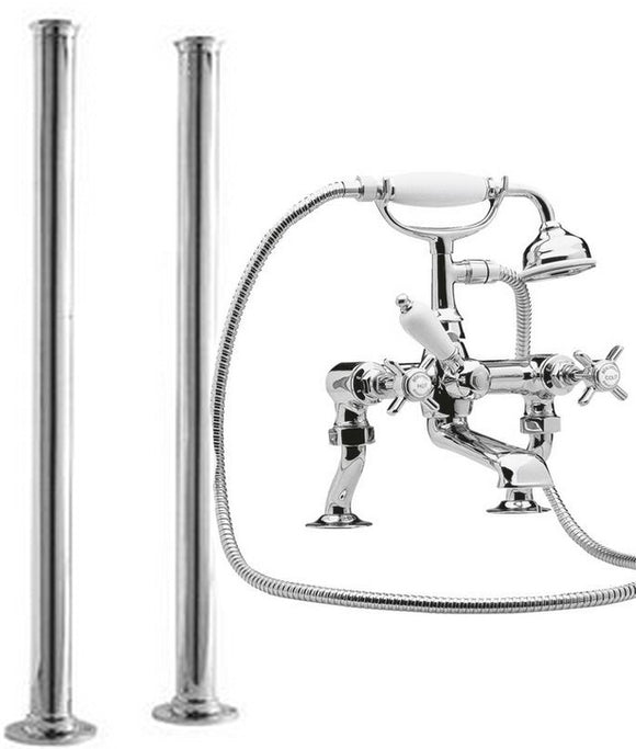 The Beaumont Cranked Leg bath shower mixer has for many years been our most popular traditional bath shower mixer. A tried and trusted tap, with a far higher build quality than most at the same price. Here it is set on a pair of 697mm standpipes which are suitable for the baths we sell that have no tap holes.