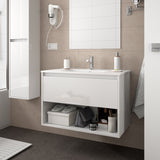 The Noja 610mm Gloss White Wall Hung 1 Drawer and 1 Shelf Unit and Basin is a stylish and durable bathroom solution. The unit features a decorative shelf for a touch of elegance, plus a generous drawer for ample storage. Crafted from a gloss white finish, it is sure to bring a luxurious look to any bathroom.