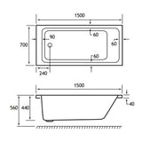 Introducing the Eastbrook Beaufort Portland 1500 x 700mm Single-Ended 12-Jet Whirlpool Bath - a compact yet luxurious solution for smaller bathrooms. Measuring 1500mm in length and 700mm in width, this bath is designed to fit snugly into limited spaces without compromising on the indulgence of a whirlpool experience. Its powerful 14-jet system ensures a soothing and rejuvenating soak, making it an ideal choice for those seeking relaxation in a confined area.
